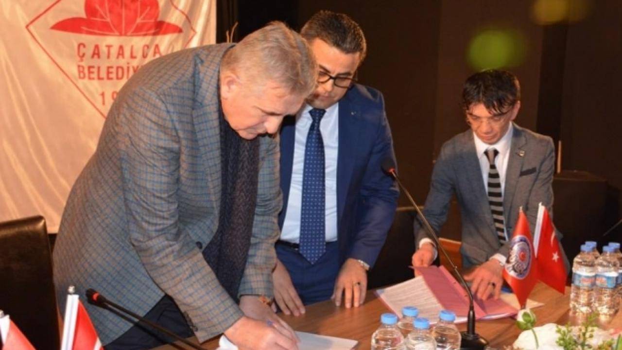 Çatalca Belediyesi ve Belediye-İş Sendikası arasında yapılan Toplu İş Sözleşmesinin imza töreni Çatalca Belediyesi Nazım Özbay Kültür Merkezi’nde yapıldı. Törene Çatalca Belediye Başkanı Cem Kara, Belediye-İş Sendika Başkanı İbrahim Özçelik ve Belediye-İş Yönetim Kurulu Üyeleri, Çatalca Belediye Başkan Yardımcıları Ayhan Tutun, Cengiz Uçar, Dursun Duran Kaya, Fehmi Akyüz, Çatalca Belediyesi Birim Müdürleri ile personelleri katıldı.