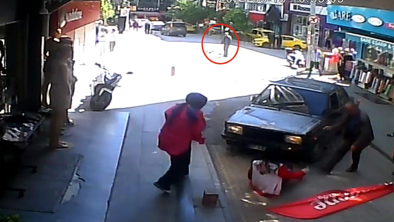 Kaza anı bir iş yerinin güvenlik kamerasına yansıdı. Görüntüde seyir halindeki otomobilin önünde ilerleyen bisikletliye ardından da kaldırımda yürüyen yayaya çarptığı, savrulan yayanın aracın altında kalmaktan son anda kurtulduğu anlar yer aldı. Kaza sonrası çevredekilerin yaralıların yardımına koştuğu görüldü.