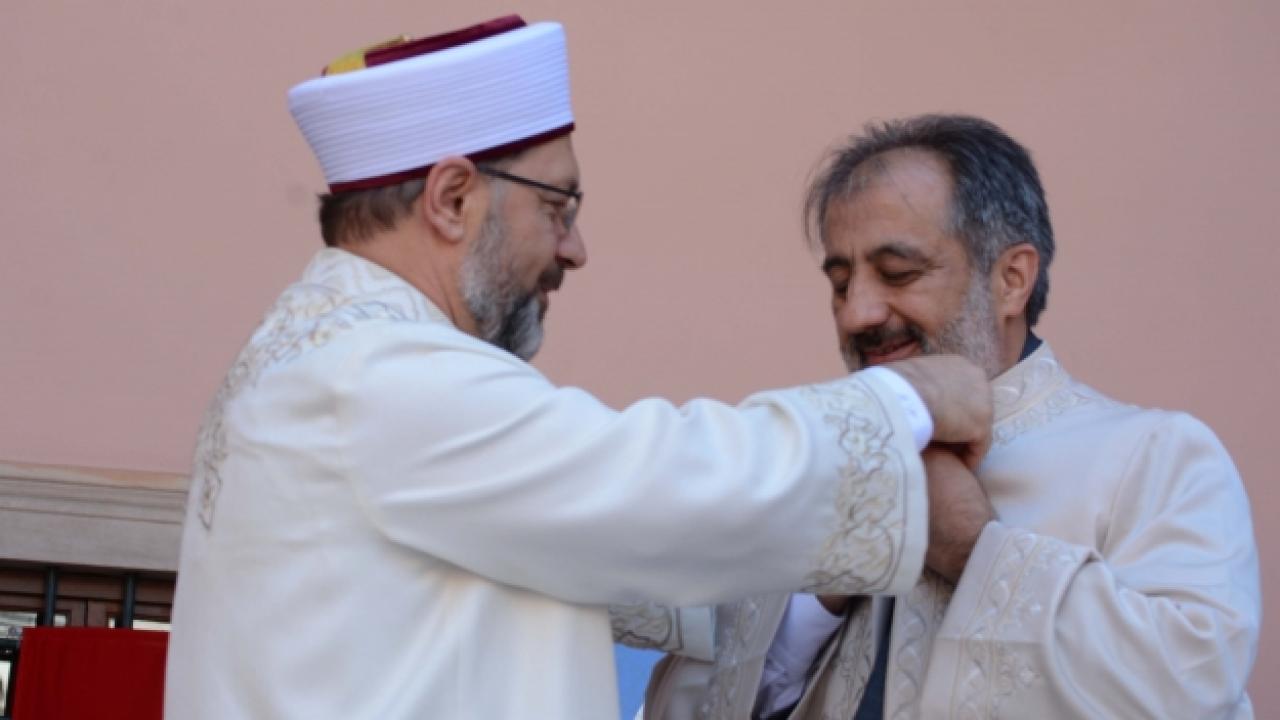 Diyanet İşleri Başkanı Prof. Dr. Ali Erbaş, İstanbul Müftüsü Prof. Dr. Mehmet Emin Maşalı'ya cübbesini giydirdi.
