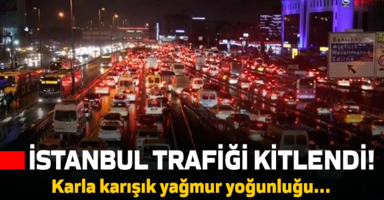 İstanbul'da cuma trafiğine karla karışık yağmur eklenince yoğunluk arttı.