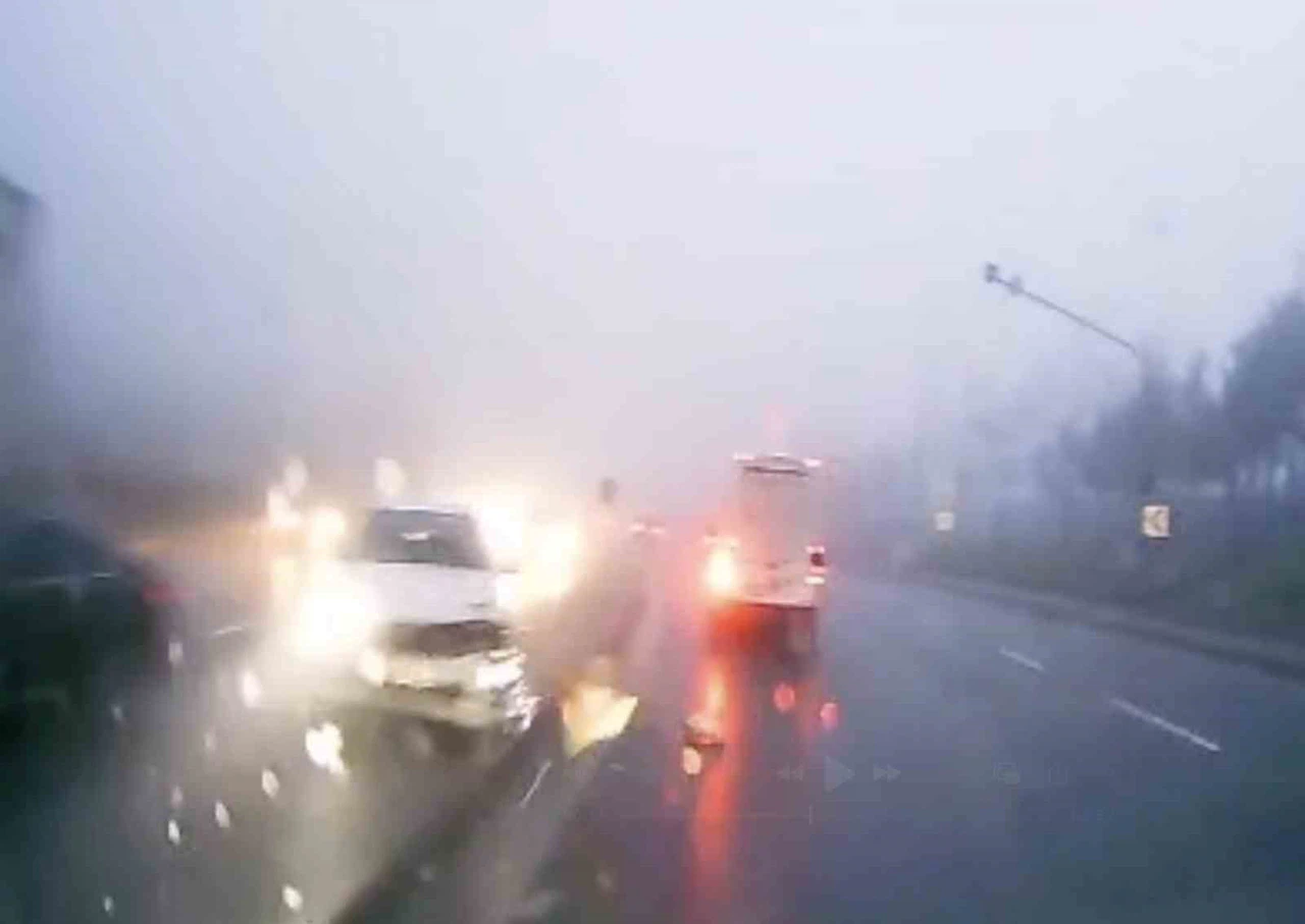 Görüntülerde, otomobilin ani şekilde savrulduğu, karşı şeritten gelen araçlara doğru yöneldiği, son anda refüje çıkarak durduğu görüldü.