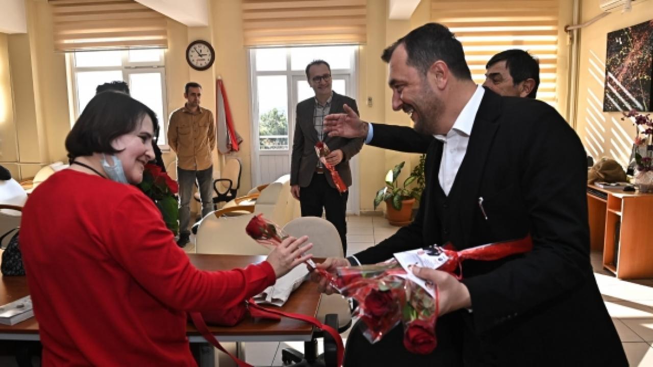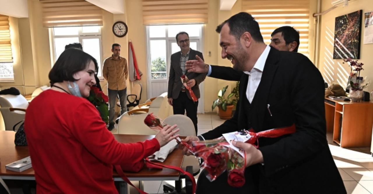 Öğretmenlere gül hediye etti