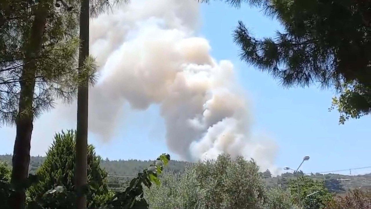 İzmir'in Menderes ilçesinde orman yangını çıktı. Bölgeye sevk edilen ekipler, alevlere havadan ve karadan müdahale ediyor.