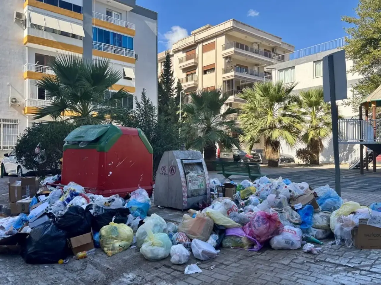 İzmir’in Karşıyaka ilçesinde uzun süredir toplanmayan çöpler nedeniyle kötü koku ve çevre kirliliği oluştu.