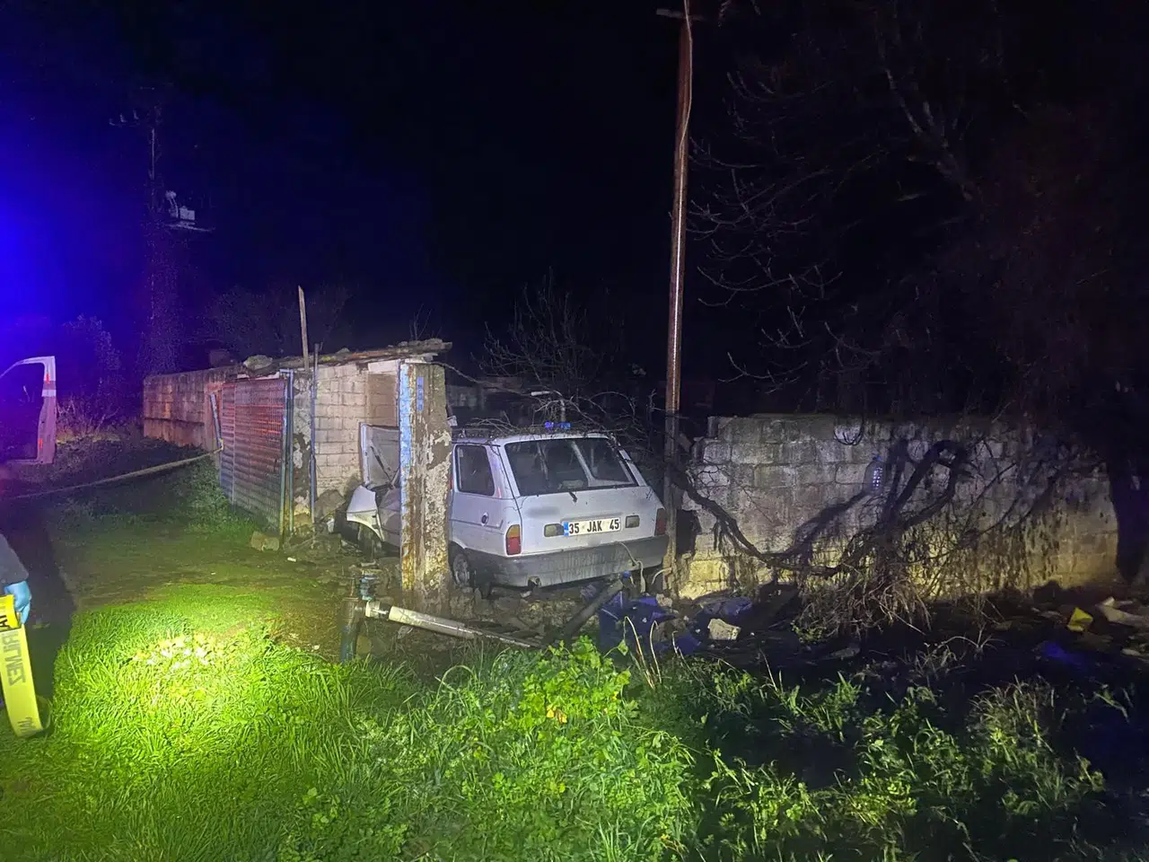 Edinilen bilgiye göre kaza, saat 02.30 sıralarında Ödemiş'ten Günlüce istikametine giden yolda meydana geldi. Mustafa Ayvacık (45) idaresindeki 35 JAK 45 plakalı otomobil, seyir halindeyken yağış nedeniyle kayganlaşan yolda sürücüsünün direksiyon hakimiyetini kaybetmesi sonucu yoldan çıktı. Savrulan araç, yol kenarındaki bir bahçe duvarına çarparak duvarı yıktı.