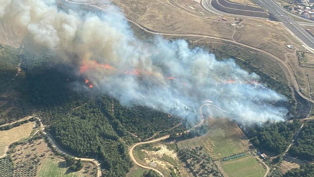 DHA- İzmir'in Menemen ilçesinde orman yangını çıktı. Ekipler, alevlere havadan ve karadan müdahale ediyor.