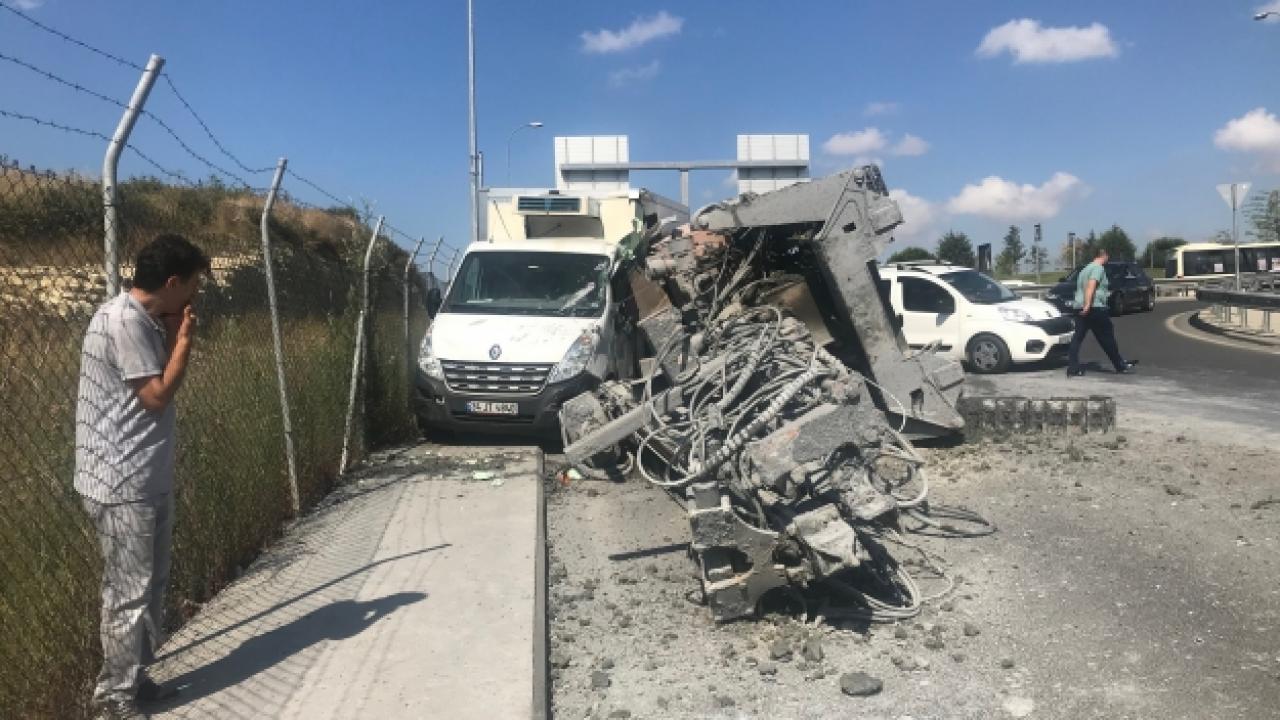 Kaza, Küçükçekmece TEM Karayolu Ankara istikameti yan yolda meydana geldi. Edinilen bilgiye göre üzerinde vinç olan 34 DAZ 25 plakalı TIR'ın sürücüsü bağlantı yolunda virajı aldığı sırada direksiyon hakimiyetini kaybetti. TIR üzerinde bulunan vinç aynı istikamette seyir halinde ilerleyen 34 JT 4840 plakalı İbrahim Güler yönetimindeki kamyonetin üzerine düştü. Kazada kamyonet sürücüsü İbrahim Güler yara almadan kurtulurken, kamyonette ağır hasar oluştu.
