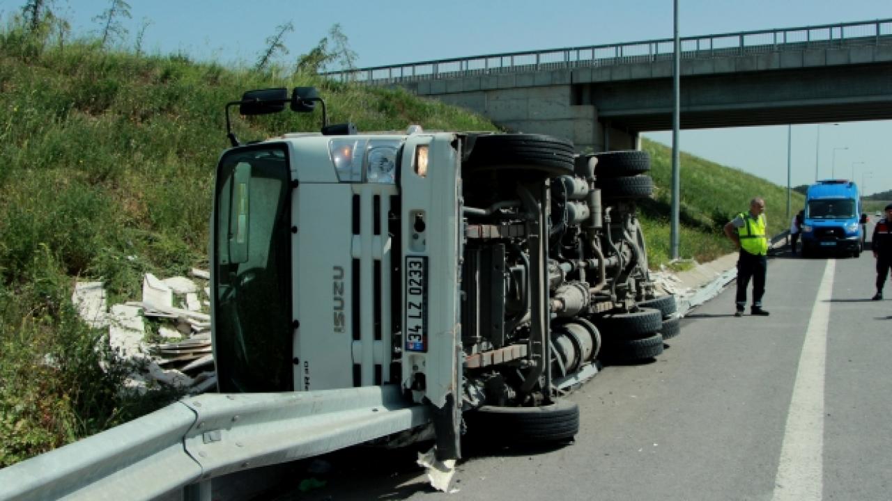 Kaza Kuzey Marmara Otoyolu Uskumruköy mevkiinde saat 10.00 sıralarında meydana geldi. Yavuzsultan Selim Köprüsü Edirne istikametinde seyreden 34 NA 2561 plakalı kamyon sürücüsü Osman Yıldız, Uskumruköy katılımından Kuzey Marmara Otoyoluna bağlanan Yenal Akçay’ın kullandığı 34 LZ 0233 plakalı mermer yüklü kamyona arkadan çarptı. Çarpmanın etkisiyle mermer yüklü kamyon, bariyerlere çarparak devrildi. Kazada Yenal Akçay yaralanırken, kamyondaki mermerler ise yol kenarına savruldu. Haber verilmesi üzerine kaza yerine sağlık, Jandarma ve İtfaiye ekipleri sevk edildi. Yaralı Akçay ambulansla hastaneye kaldırıldı. Kaza yapan kamyon ise vinç yardımıyla devrildiği yerden kurtarıldı.
