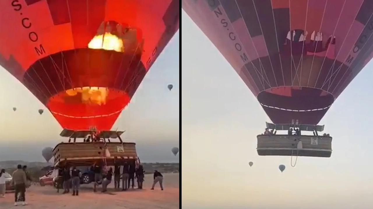Sıcak hava balonunun otomobile çarptığı, yaklaşık 10 kişinin sepetten tutarak çarpma anını engellemeye çalıştığı anlar, çevredekiler tarafından cep telefonu kamerasıyla görüntülendi.