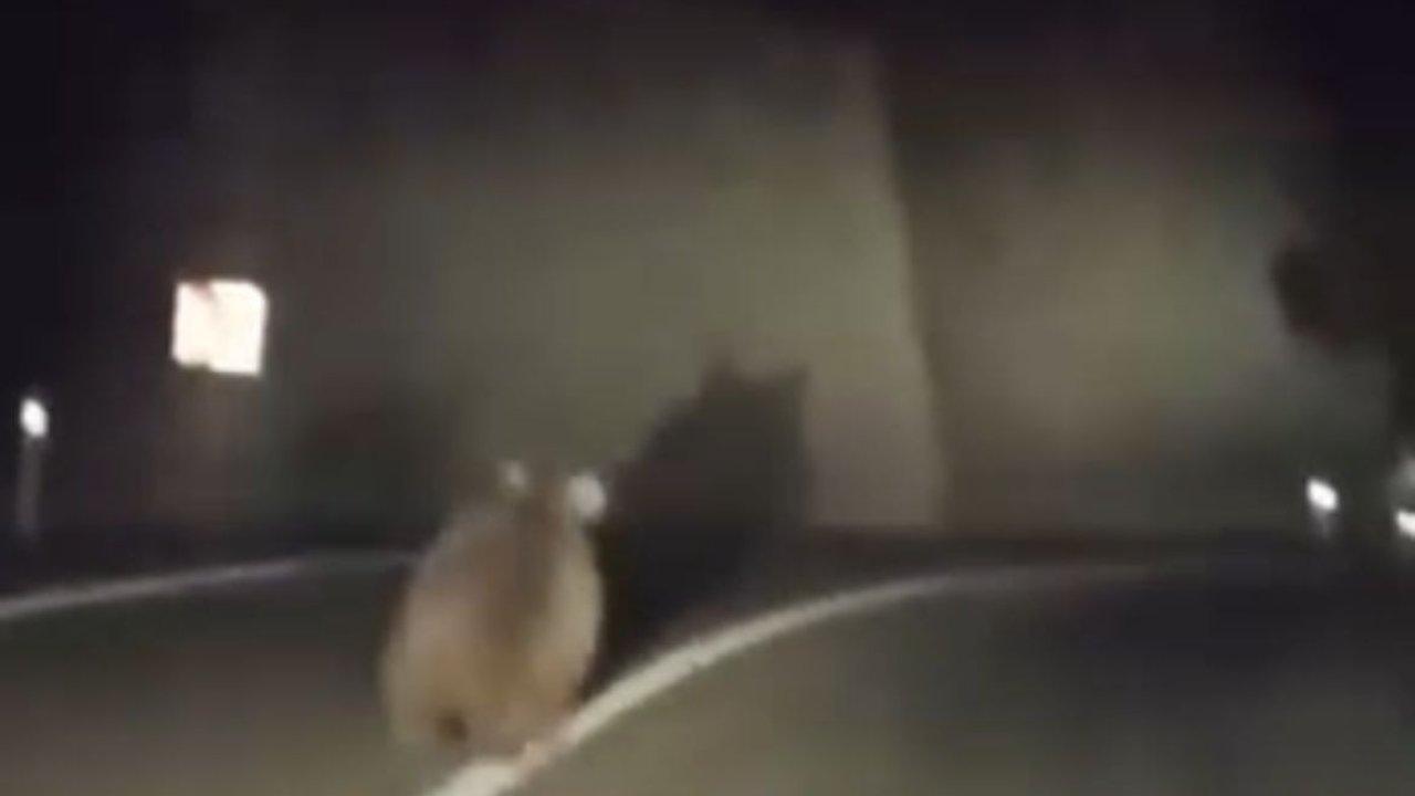 Nilüfer ilçesi Gümüştepe Mahallesi mevkisinde dün gece saatlerinde 2 arkadaş otomobille gezerken, aniden yola ayı çıktı. Bir süre aracın önünde yolda gezinen ayı, daha sonra ağaçların arasına girerek gözden kayboldu. Otomobildekiler, o anları cep telefonu kamerasıyla görüntüledi.