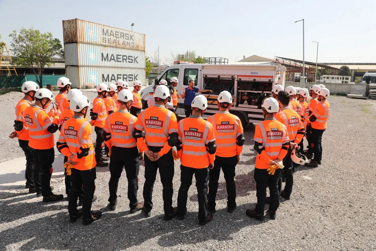 Karatay Belediyesi, Türkiye’nin afetlere karşı direncini artırmak amacıyla yürüttüğü örnek projelerle adından söz ettirmeye devam ediyor. Afet İşleri Müdürlüğü bünyesinde kurulan 60 kişilik Arama ve Kurtarma Ekibi, AFAD Konya İl Müdürlüğü’nün uzman kadrosu tarafından verilen profesyonel eğitimlerle sahada görev almaya hazırlanıyor.