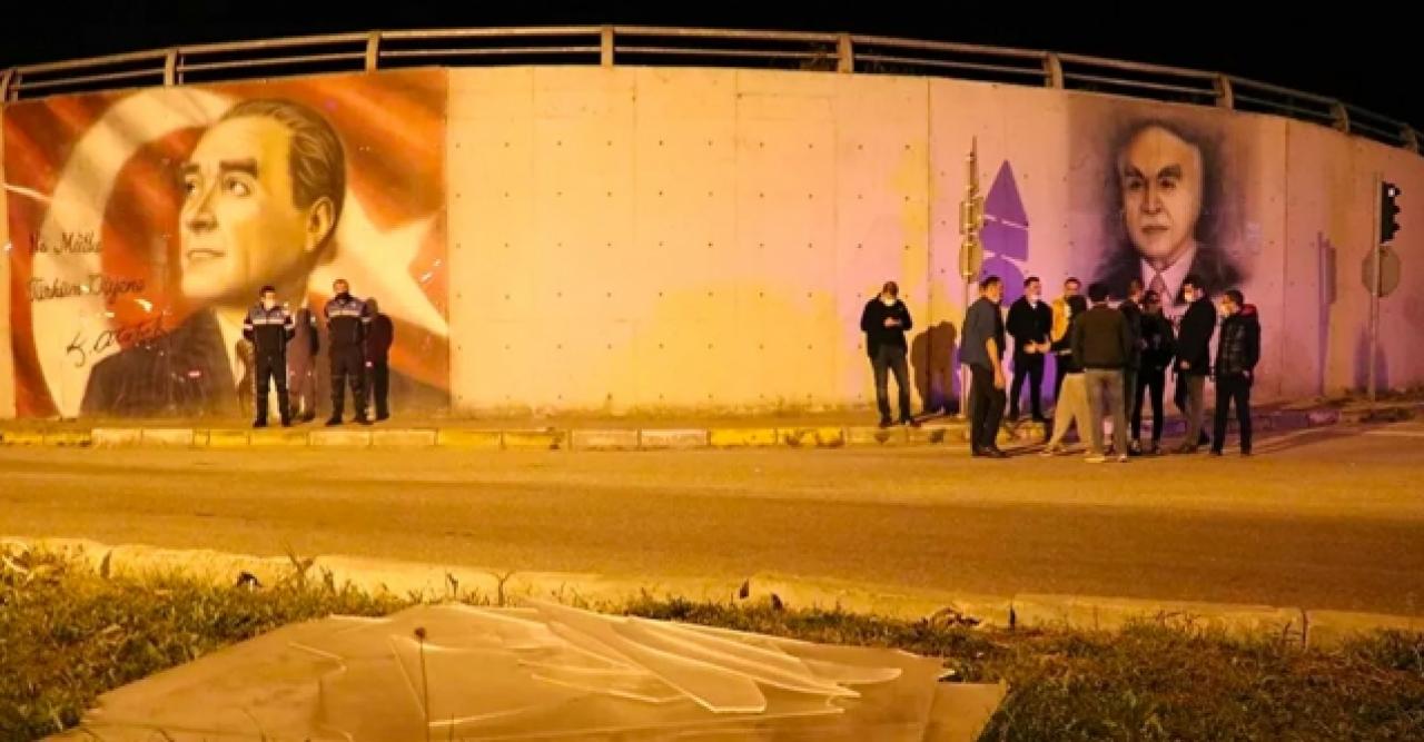 Karayolları ekiplerinin Türkeş ve Erbakan'ın resimlerini boyayla kapattığını gören bir kişi belediye ve emniyet ekiplerine haber verdi.
