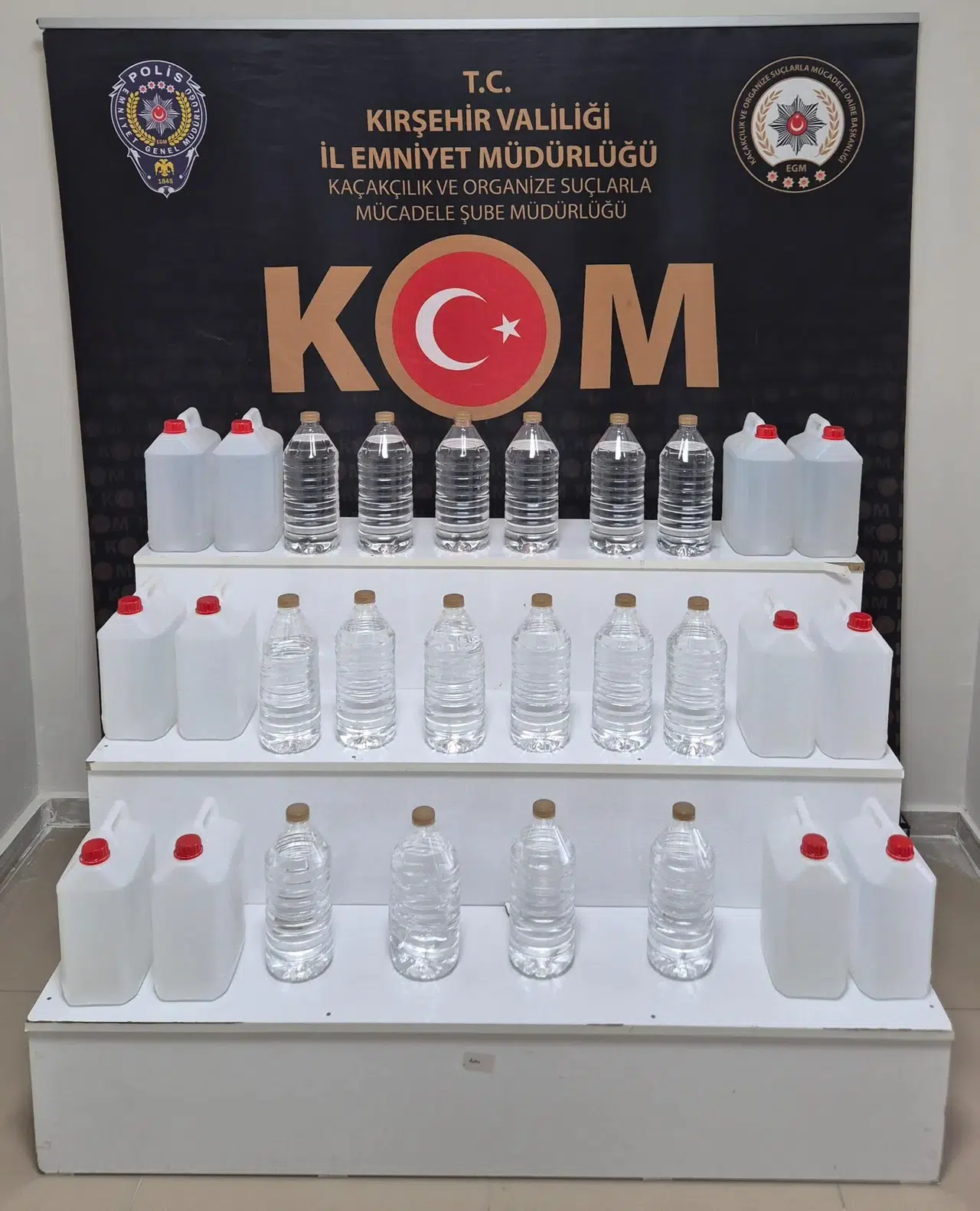 Kırşehir’de kargo yoluyla gönderilen 80 litre kaçak etil alkol polis ekiplerince yakalandı.