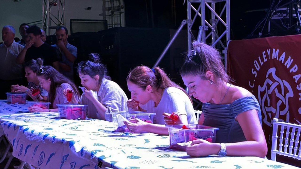 Ferhadanlı Mahallesi'nde kurulan şenlik alanına gelen konuklara, belediye görevlileri tarafından yöresel ürünlerin yer aldığı stantlara konulan pişi, peynir ve karpuz ikramı yapıldı. Şenlikte düzenlenen karpuz yeme yarışması ise renkli görüntülere sahne oldu. Kadınlar ve erkekler olmak üzere iki kategoride düzenlenen yarışmaya 20 kişi katıldı. Yarışmacılar, altın kazanmak için 2 kilo karpuzu en hızlı bitirmek için kıyasıya mücadele etti. Mücadele sonunda en erken 2 kilo karpuzu ilk yiyen yarışmacı çeyrek, ikinci gram, üçüncü ise yarım gram altın kazındı.