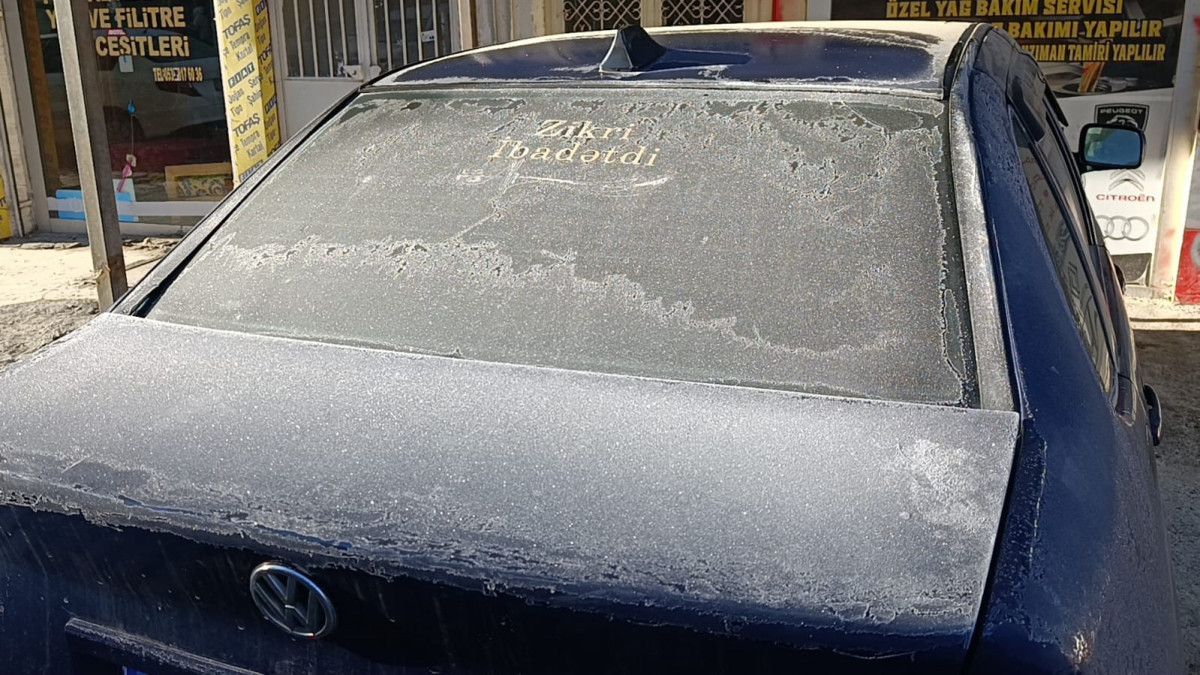 Vatandaşlar, donan camları temizlemek için dakikalarca uğraşmak zorunda kaldı. Kars’ın farklı noktalarında süs havuzları ve su birikintileri de buz tuttu.