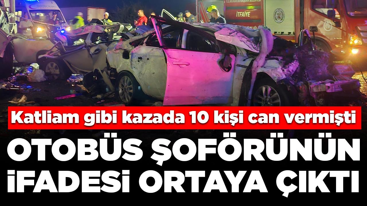 Mersin'de 10 kişinin hayatını kaybettiği, 39 kişinin yaralandığı kazaya ilişkin tutuklanan yolcu otobüsünün şoförü Ali Güler'in (45), ifadesi ortaya çıktı. Güler'in, "Gişeden çıktıktan sonra bir aracı solladım. Hava aşırı yağışlıydı. Zemin ıslak olunca hakimiyetimi kaybettim. Çok üzgünüm" dediği öğrenildi.