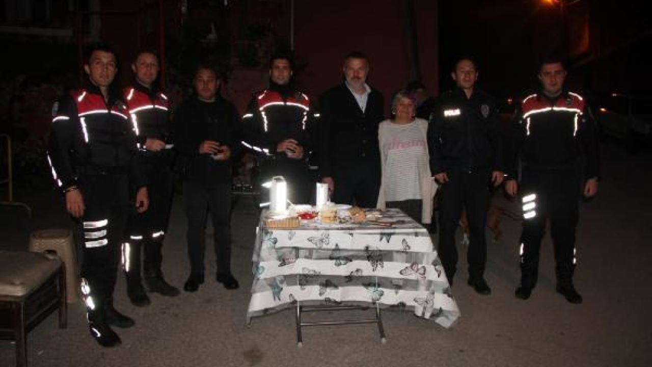 Mahalleli, konfetilerle karşılayıp, pasta kestiği polislere pasta ve içecek ikram etti. İkramlar için polis ekipleri, mahalleliye teşekkür etti.