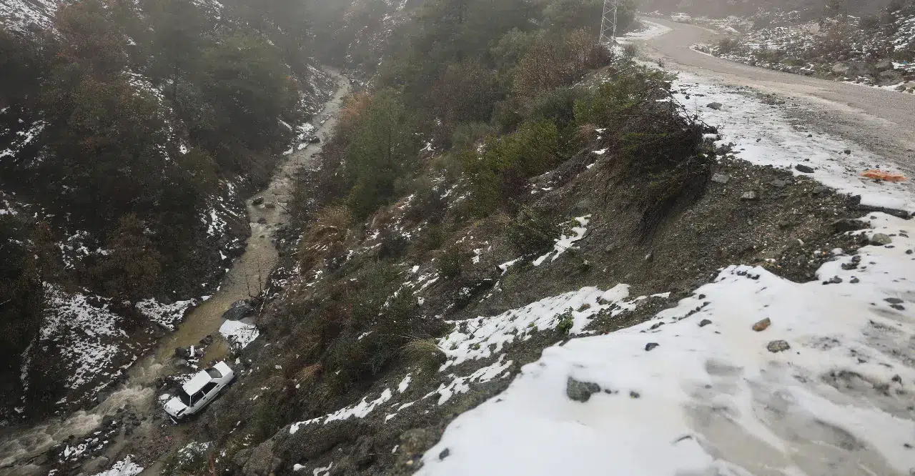 Hatay’ın Defne ilçesinde kayganlaşan yolda kontrolden çıkan otomobil, metrelerce yükseklikteki uçurumdan dereye yuvarlandı. Kazada sürücü, son anda kendini araçtan atarak hayatta kaldı.