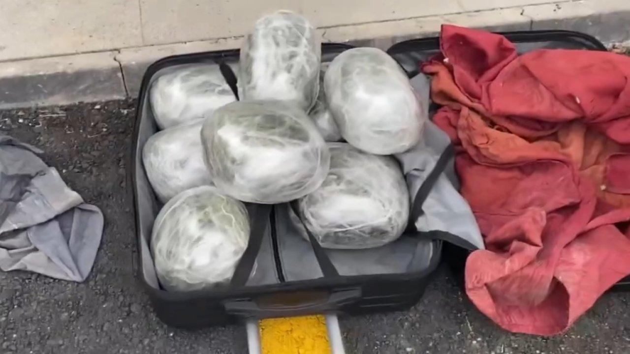 Kayseri'de, il dışından kente bavulla 9 kilo 807 gram skunk getiren 2 şüpheli yakalandı.