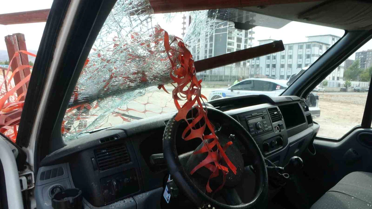 Çarpmanın etkisiyle demir parçası minibüsün camını delerek Özbey’in kafasına saplandı. Ağır yaralanan sürücü hastaneye kaldırıldı.