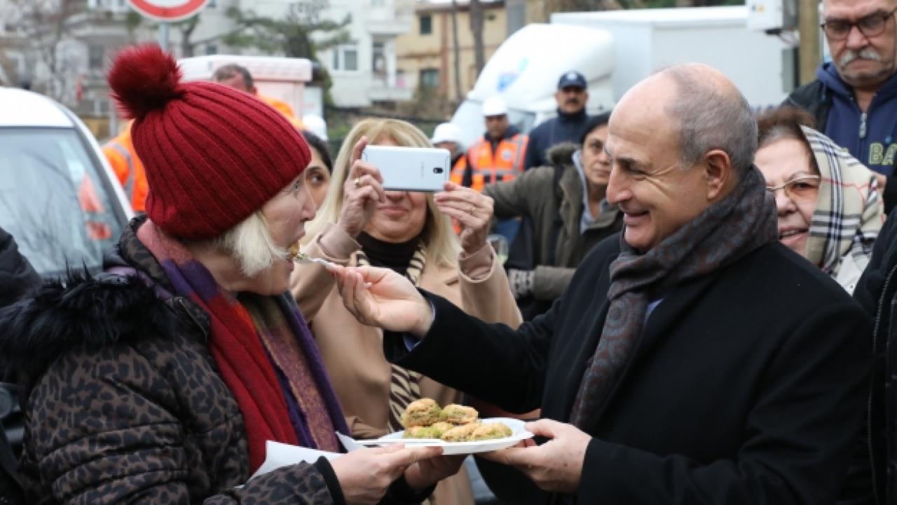 Büyükçekmece'de kentsel dönüşüm kapsamında evleri yıkılan vatandaşlar yıkımı tatlı yiyerek izledi. Tatlıları vatandaşlara Belediye Başkanı Hasan Akgün kendi eliyle yedirdi