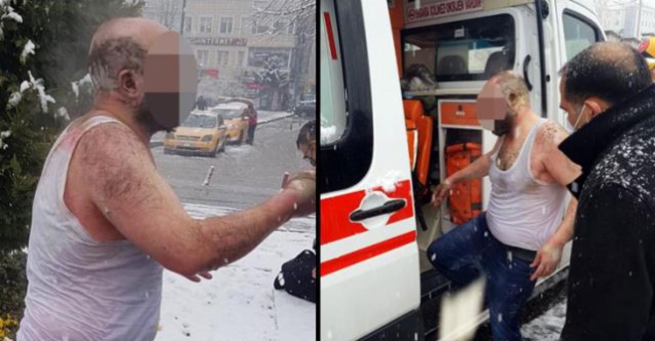 Alevler içinde kalan Yaşar K.'ya ilk müdahaleyi meydandaki polisler yaptı. Yangın söndürme tüpüyle yapılan müdahale ile adamın üzerindeki alevler söndürüldü.