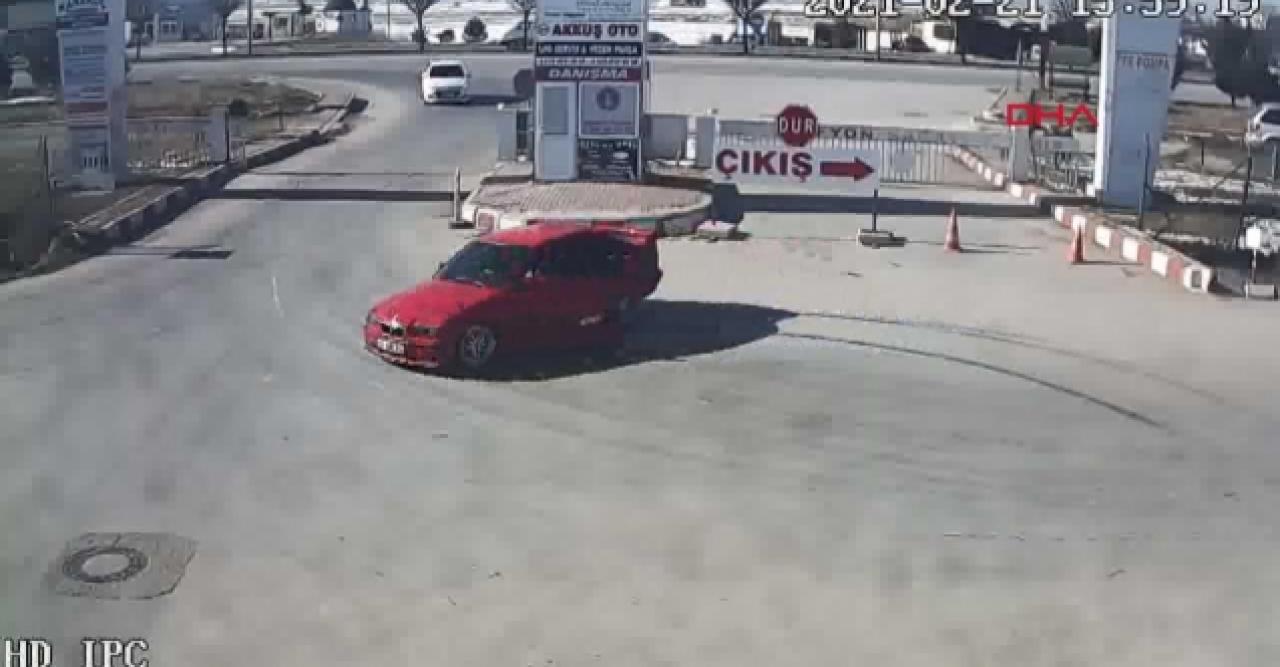 Olay anı güvenlik kameralarına da anbean yansıdı. Görüntüde sürücünün otomobiliyle gelip, boş alanda bir kaç kez drift yaptığı yer aldı.