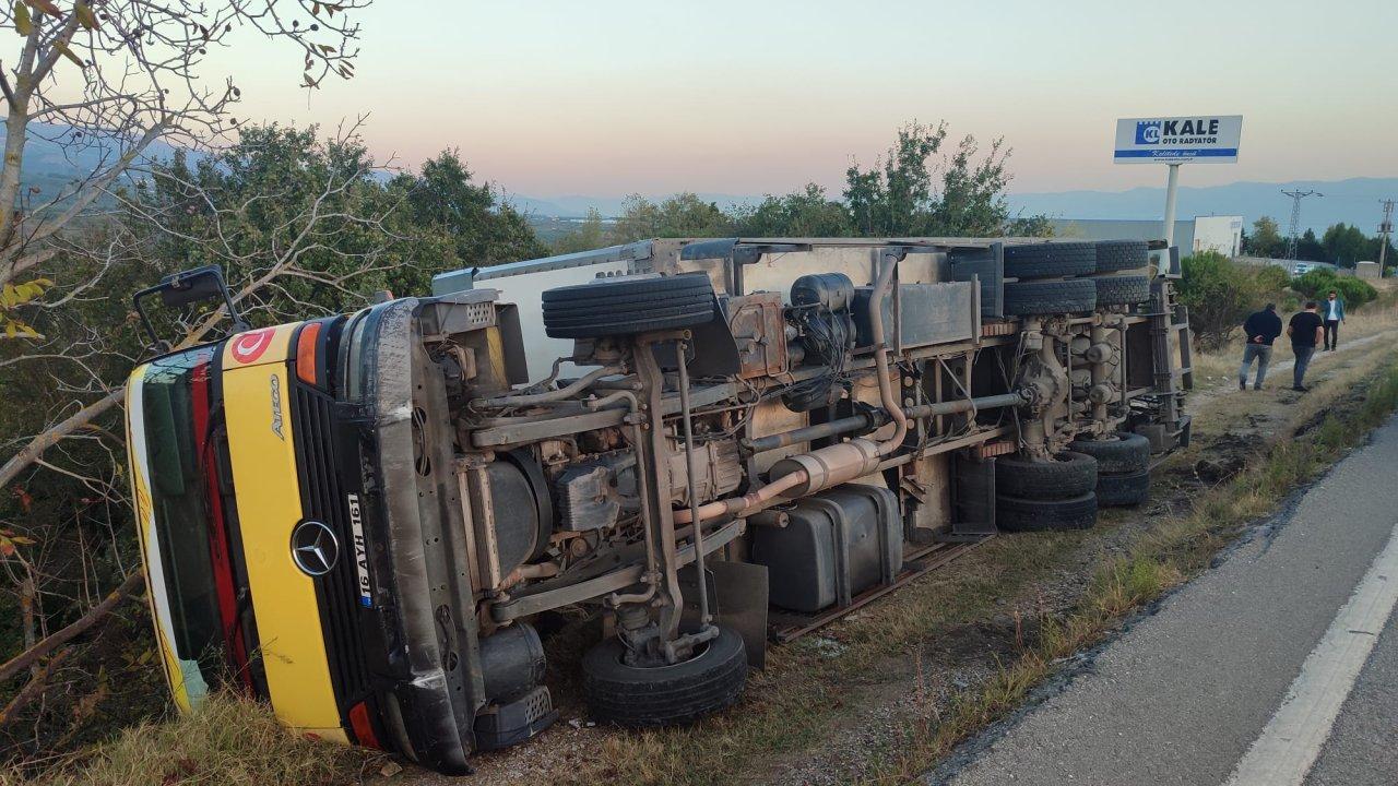 Kaza, saat 18.30 sıralarında Orhangazi-Yalova Karayolu, Süpürgelik mevkisinde meydana geldi. Orhangazi'den Yalova istikametine giden Cengiz Ayhan (43) idaresindeki 16 AYH 161 plakalı kamyon, sürücüsünün direksiyon hakimiyetini kaybetmesi sonucu kontrolden çıktı. Metrelerce savrulan kamyon devrilerek yoldan çıktı. Devrilen kamyon dere yatağına düşmekten son anda kurtulurken, kazayı gören çevredekiler durumu 112 Acil Çağrı Merkezine bildirdi. İhbar üzerine olay yerine çok sayıda jandarma ve sağlık ekibi sevk edildi. Sağlık ekiplerince olay yerinde ilk müdahalesi yapılan Ayhan, Yalova Devlet Hastanesine kaldırdı. Tedavi altına alınan yaralının sağlık durumun iyi olduğu öğrenildi. Jandarma ekiplerinin olay yerindeki incelemesi ve kamyonun vinç ile kaldırılmasının ardından trafik akışı normal seyrine döndü.