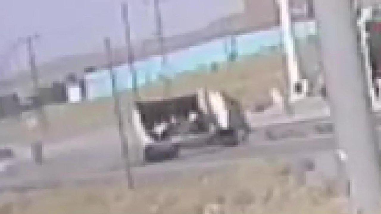Ağrı'nın Patnos ilçesinde lastiği patlayan küçükbaş yüklü kamyonet, takla attı. Sürücünün ağır yaralandığı, kamyonetin kasasındaki koyun ve keçilerin yola savrulduğu kaza, güvenlik kamerasına yansıdı.
