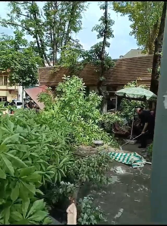 Esnafın ihbarıyla bölgeye çok sayıda polis ve itfaiye ekibi sevk edildi. İncelemede bulunan ekipler ağacın kaldırılması için çalışma başlattı.