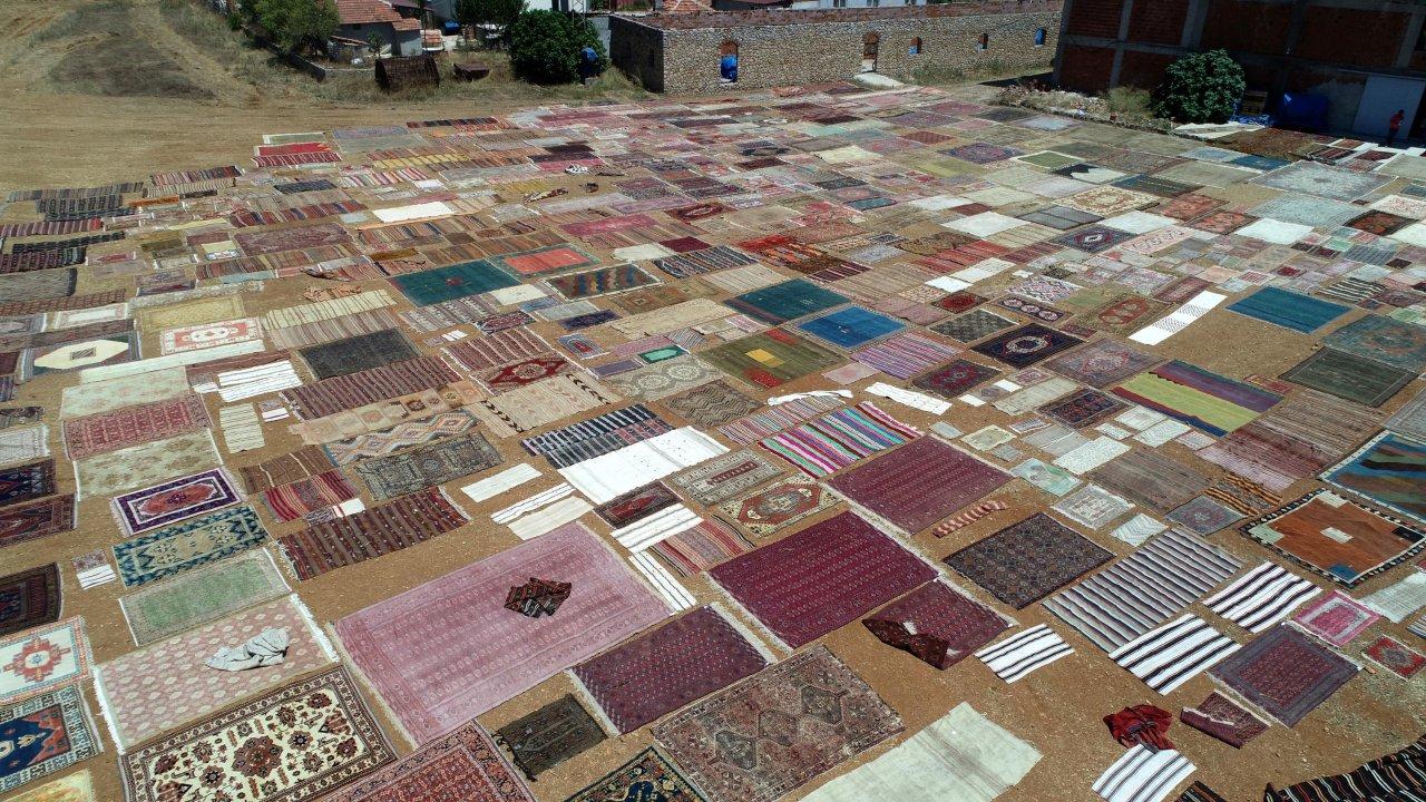 Turizm kenti Antalya'nın Döşemealtı ilçesinde kışın buğday ekilen tarlalar, yazın kavurucu sıcaklarda halı tarlasına dönüşüyor. Farklı renk ve desenlerde dokunan yün halılar, yüzlerce dönüm araziye serilip günlerce güneşte bekletiliyor. Nem nedeniyle içerilerinde biriken ve zarar veren bakteri ve böceklerden arındırılan halıların renkleri de güneşle birlikte daha pastel tonlara kavuşuyor. Döşemealtı ilçesinde yıllardır halı alım ve satışının yanı sıra onarımını da yapan Halil Börekçi, bu yıl buğday hasadının ardından 25 dönümlük tarlasına 2 bine yakın halı serdi. Çalışanlar, sabah erken saatlerde halıları tarlaya serip, gölgelik alanlarda onarılması gerekenleri onarıyor. Öğleden sonra da halıların diğer yönleri çevrilip akşama kadar güneşlendiriliyor. Bu işlem günlerce sürüyor. Halıların tamamının yün dokuma olduğunu belirten Halil Börekçi, İç Anadolu ve Karadeniz bölgesinden dahi güneşte bekletilmesi için gönderilen halılar olduğunu söyledi. Halılar arasında nadir bulunan ve yüksek fiyatlardan satılanlar da var.