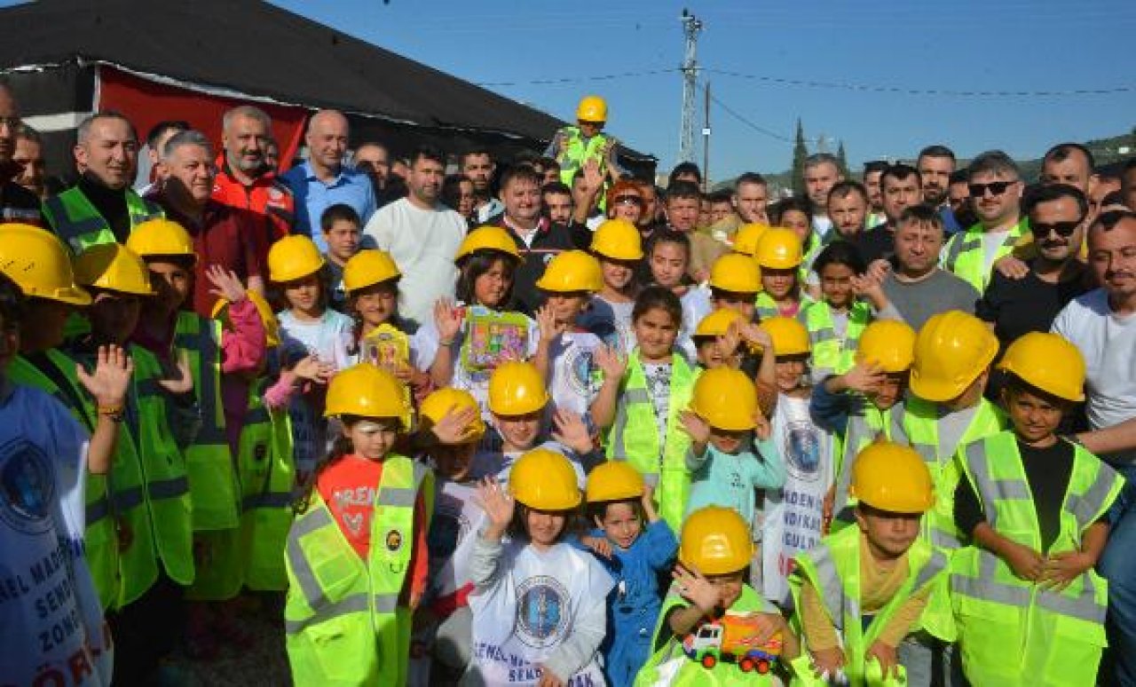 Maden işçileri, talepleri üzerine baret ve yeleklerini de çocuklara hediye etti.