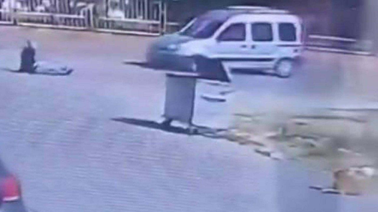 O esnada sırt üstü yola düşerken yoldan geçen sürücünün kendisine çarpmasından son anda kurtuldu. Dehşete düşüren anlar güvenlik kamerasına saniye saniye yansıdı.