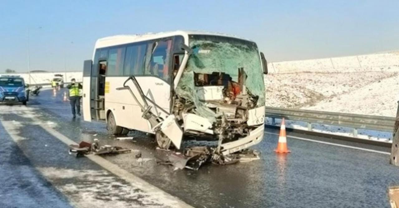 Kaza, sabah saatlerinde, Kuzey Marmara Otoyolu bağlantısı Gebze Muallimköy mevkisinde meydana geldi. Ankara yönüne giden Memduh Şık yönetimindeki 34 GM 337 plakalı turistleri taşıyan midibüs, aynı yöne giden Muharrem Bahar yönetimindeki 16 HBL 13 plakalı TIR'a çarptı. İhbar üzerine bölgeye sağlık ve trafik ekipleri sevk edildi. Kazada yaralanan midibüs sürücüsü Memduh Şık ile araçtaki 9 kişi, ilk müdahalelerinin ardından çevredeki hastanelere kaldırılarak tedaviye alındı.