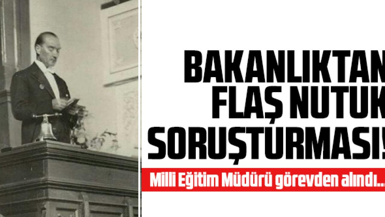 Milli Eğitim Bakanlığı tarafından yapılan açıklamada, "Mersin ili Çamlıyayla İlçe Milli Eğitim Müdürlüğünün Büyük Önder Gazi Mustafa Kemal Atatürk’ün 'Nutuk' eserinin okullarda dağıtımıyla ilgili medyaya da yansıyan yazışmasına ilişkin olarak bakanlığımız maarif müfettişleri tarafından inceleme/soruşturma başlatılmış olup, süreç devam etmektedir" ifadeleri kullanıldı.