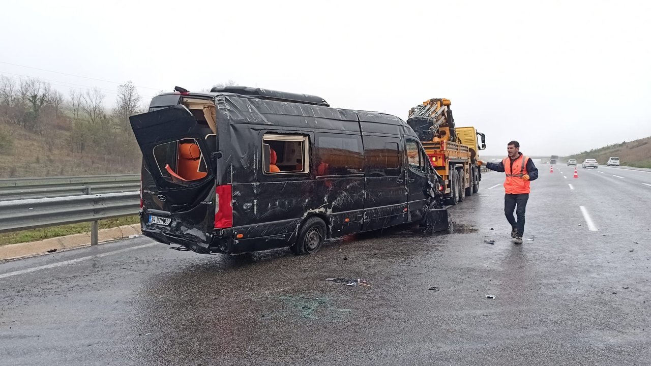 Ankara yönüne giden, sürücüsünün ismi öğrenilemeyen 34 DZK 469 plakalı otomobil, yağmur nedeniyle kayganlaşan yolda kontrolden çıktı. Bu sırada arkasından gelen, yabancı turistleri taşıyan 34 DZL 832 plakalı minibüs, otomobile çarptı. Kazada minibüsteki 3 kişi ile otomobildeki 2 kişi, yaralandı. Kazayı görenlerin ihbarı ile bölgeye jandarma, itfaiye ve acil sağlık ekipleri geldi. Yaralılar, ambulanslarla çevredeki hastanelere kaldırıldı.
