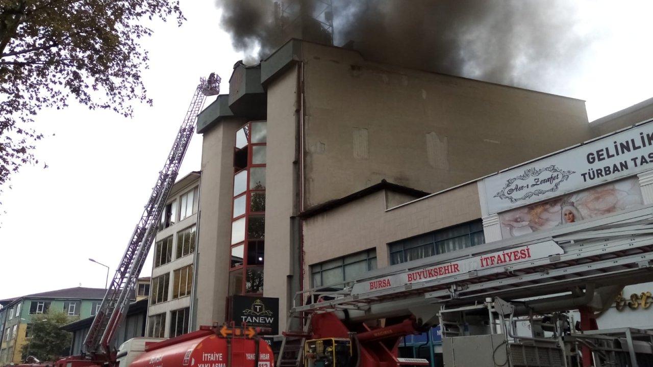 İnegöl ilçesi Mahmudiye Mahallesi Osmanbey Caddesi'ndeki 5 katlı mobilya imalathanesinin çatısında, saat 10.00 sıralarında yangın çıktı.