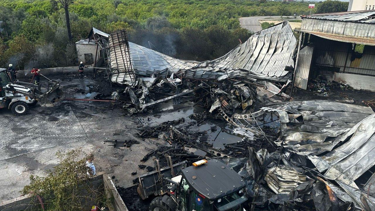 İlçeye bağlı Çeşmeli Mahallesi'ndeki narenciye paketleme tesisinde henüz bilinmeyen bir nedenle yangın çıktı. Tesisteki plastik kasaların yoğunluğu nedeniyle yangın kısa sürede büyürken, bölge siyah dumanla kaplandı.