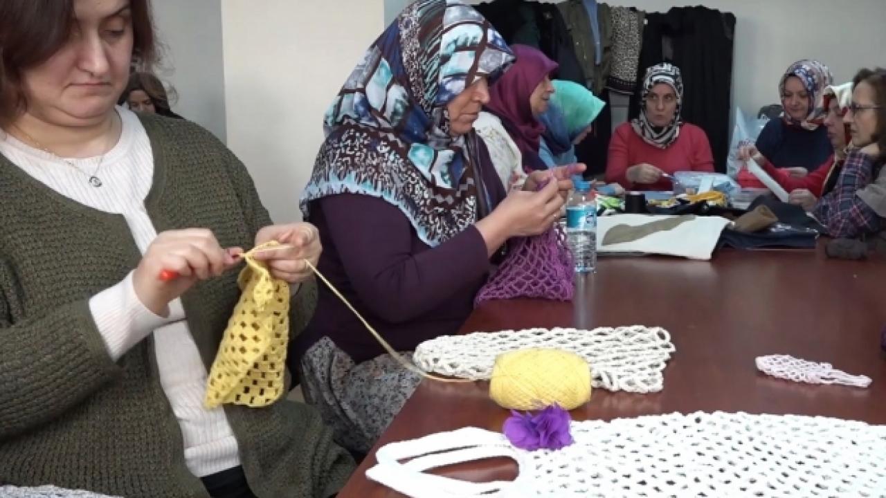 Aynalıkavak Semt Konağı'nda kursiyerle örgü eğitimi veren Tülin Çobanoğlu, çok güzel bir uygulamaya imza attıklarını belirterek, "Biz burada ileriye yönelik bir proje geliştirdik. Çanta dikiyoruz, file örüyoruz. Poşeti azaltmak için çantaları dikiyoruz. Hiç olmazsa hanımlar bu çantaları kullanıyor. İleriye yönelik gençlerimiz için iyi bir projede. İleride bu çantaları parayla satabilecekler. İlgi çok iyi. Hanımlarımız baya bir dikkatli. Hatta marketlerden poşet almıyorlar. Kendimiz burada temin ediyoruz. Diğer konaklarda da yapılırsa Türkiye genelinde de çok iyi olur. Hiç olmazsa atık durumunu azaltmış oluruz. Hanımlarımız bu konuda dirayetli ve kararlı. Böyle kurslar da hanımlarımızı teşvik ediyor" diye konuştu.