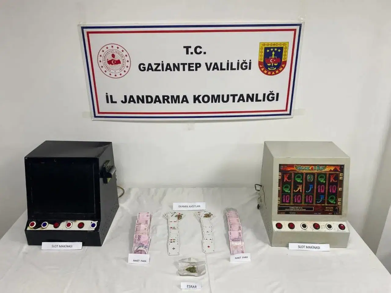 Yapılan denetimlerde, iş yerinde kumar oynandığı tespit edilirken, 9 şahıs jandarma ekiplerince suçüstü yakalandı. Operasyonda yapılan aramalarda 2 gram kubar esrar, 2 adet slot makinesi, 2 deste iskambil kağıdı ile 45 bin 155 TL nakit para ele geçirildi.