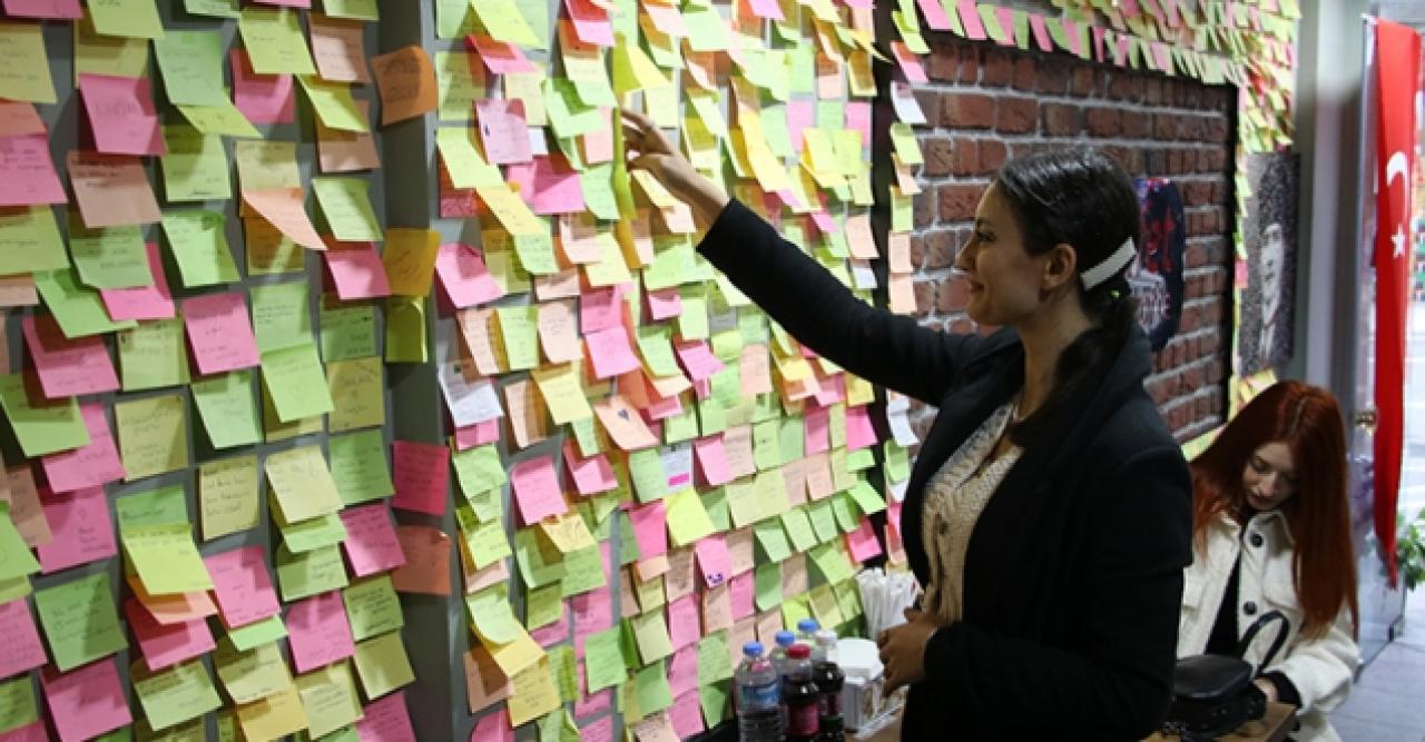 31 yaşındaki Gökhan Sakar, AA muhabirine, dükkanını bir sene önce açtığını söyledi. İş yerine gelenlerin masaların üzerine konulan küçük kağıtlara notlar yazarak duvara yapıştırdığını anlatan Sakar, herkesin durumu ilgi ve memnuniyetle karşıladığını ifade etti. Sakar, ilk notu kendisinin yazdığını belirterek, "İşletmem olduğunda böyle bir şey yapmayı çok istiyordum. Dükkanı açmamla bu uygulamayı başlattım. Duvarların yüzde 90'ı not kağıtlarıyla dolmuş durumda." dedi.