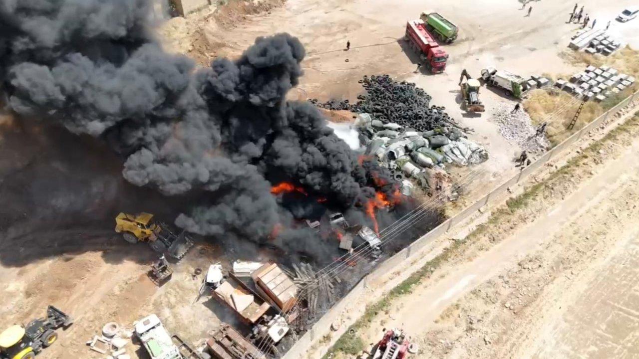 Nusaybin Belediyesi'ne ait Gırnavas Mahallesi'ndeki hurdalıkta bulunan lastikler, öğle saatlerinde bilinmeyen nedenle alev alıp yandı. Rüzgarın da etkisiyle büyüyen alevler, bazı hurda araçlar ile atıl durumdaki eşyalara da sıçradı. İhbarla bölgeye itfaiye ve polis ekipleri sevk edildi.