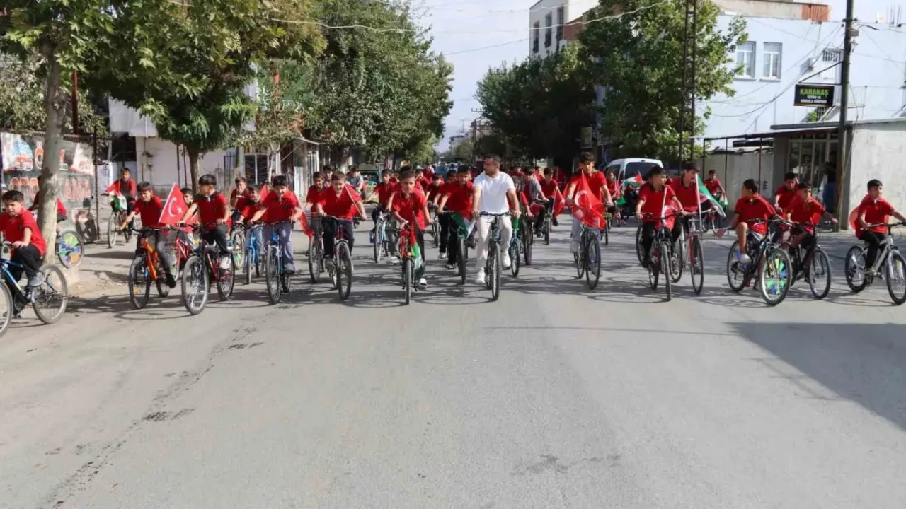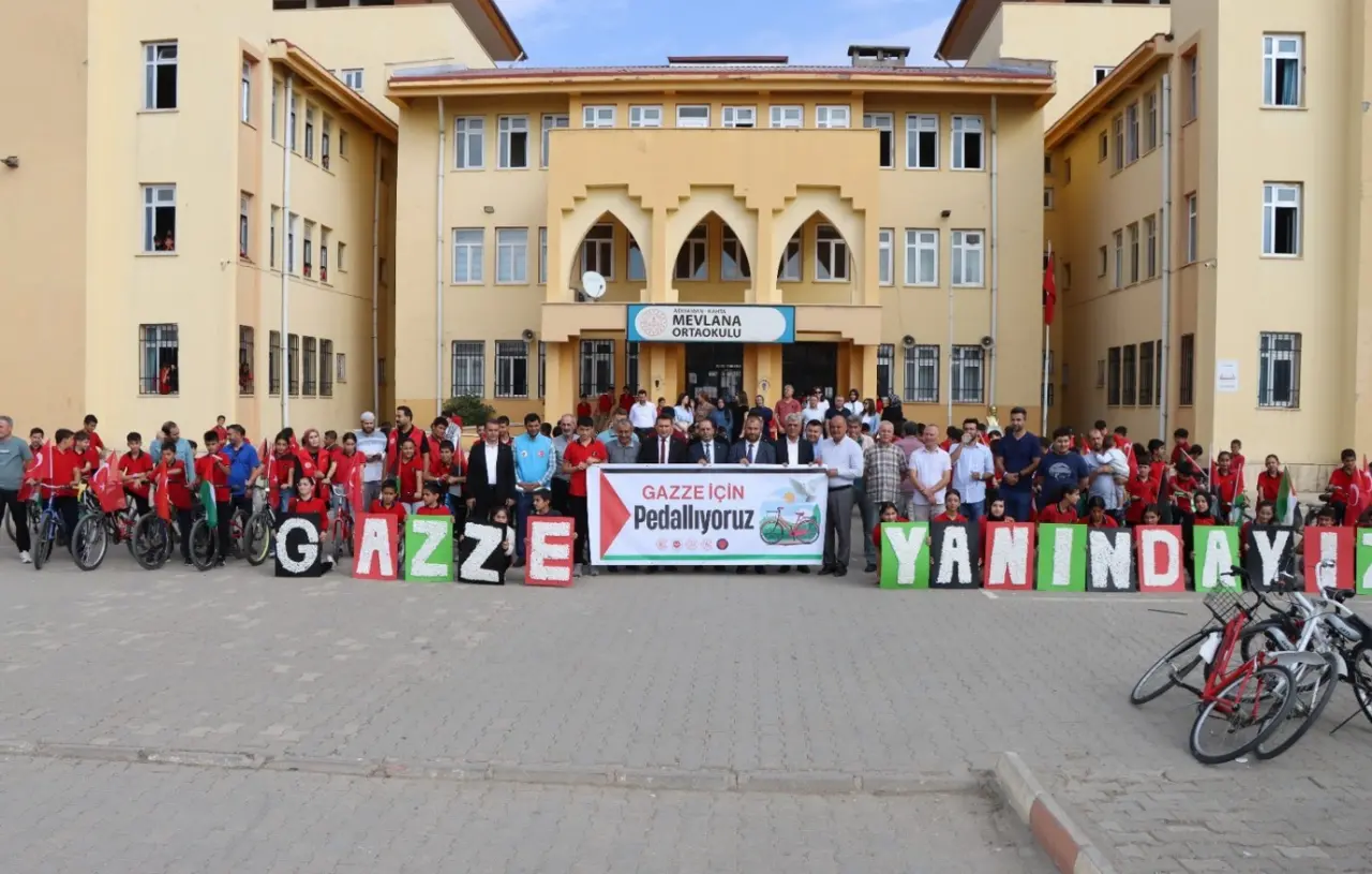 Adıyaman’ın Kahta ilçesinde düzenlenen "Gazze İçin Pedallıyoruz" temalı etkinlikte öğrenciler, Filistin’de yaşanan insanlık dramına dikkat çekmek için pedal çevirdi.