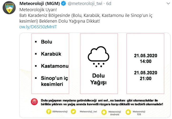 Meteoroloji'den yapılan son uyarıya göre, Batı Karadeniz'de öğleden sonra ve akşam saatlerinde sağanak ve gök gürültülü sağanak tahmin ediliyor. Bolu, Karabük ve Kastamonu il geneli ile Sinop'un iç kesimlerinde yerel dolu yağışı öngörülüyor.