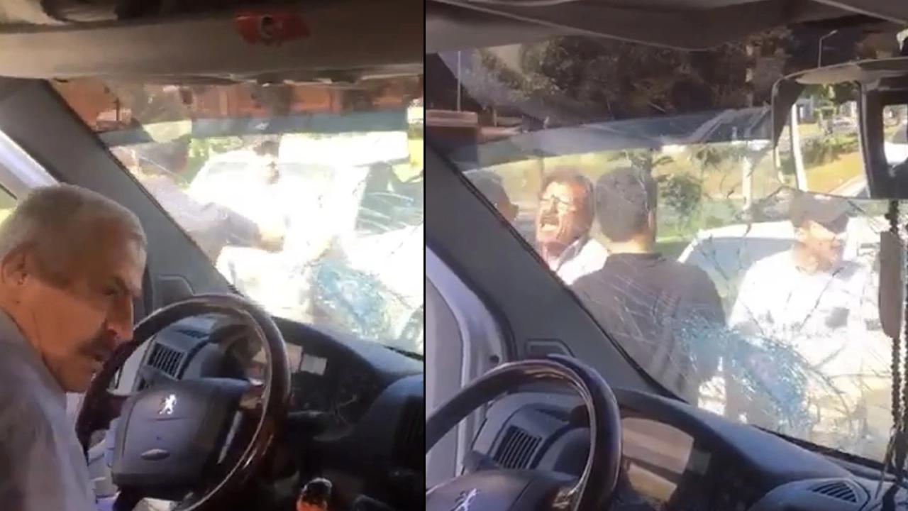Olay, dün öğleden sonra Dinek Mahallesi'nde meydana geldi. Lise öğrencilerini taşıyan servis aracının şoförü H.Ş. ile bir otomobilin sürücü M.S. ve yanındaki oğlu F.S. arasında yol verme nedeniyle tartışma çıktı. M.S., otomobiliyle servis aracının önünü kesti. Yaşanan tartışma kavgaya dönüştü, F.S. sopayla servis aracının camına vurmaya başladı. Ön camı kırılırken olay anında araçtaki öğrenciler panik yaşayıp, bağrıştı. F.S. ve babası M.S. trafikteki diğer vatandaşlar tarafından sakinleştirildikten sonra otomobile binip hızla olay yerinden uzaklaştı.