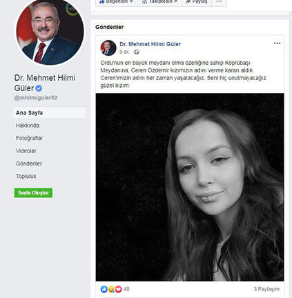 Kararı sosyal medya hesabından duyuran Ordu Büyükşehir Belediye Başkanı Mehmet Hilmi Güler, 'Ordu’nun en büyük meydanı olma özelliğine sahip Köprübaşı Meydanı’na Ceren Özdemir kızımızın adını verme kararı aldık. Ceren’imizin adını her zaman yaşatacağız. Seni hiç unutmayacağız. Güzel kızım' paylaşımında bulundu.