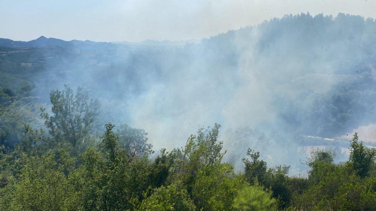 Yaklaşık 3 dönümlük alanın zarar gördüğü alanda soğutma çalışması devam ediyor.