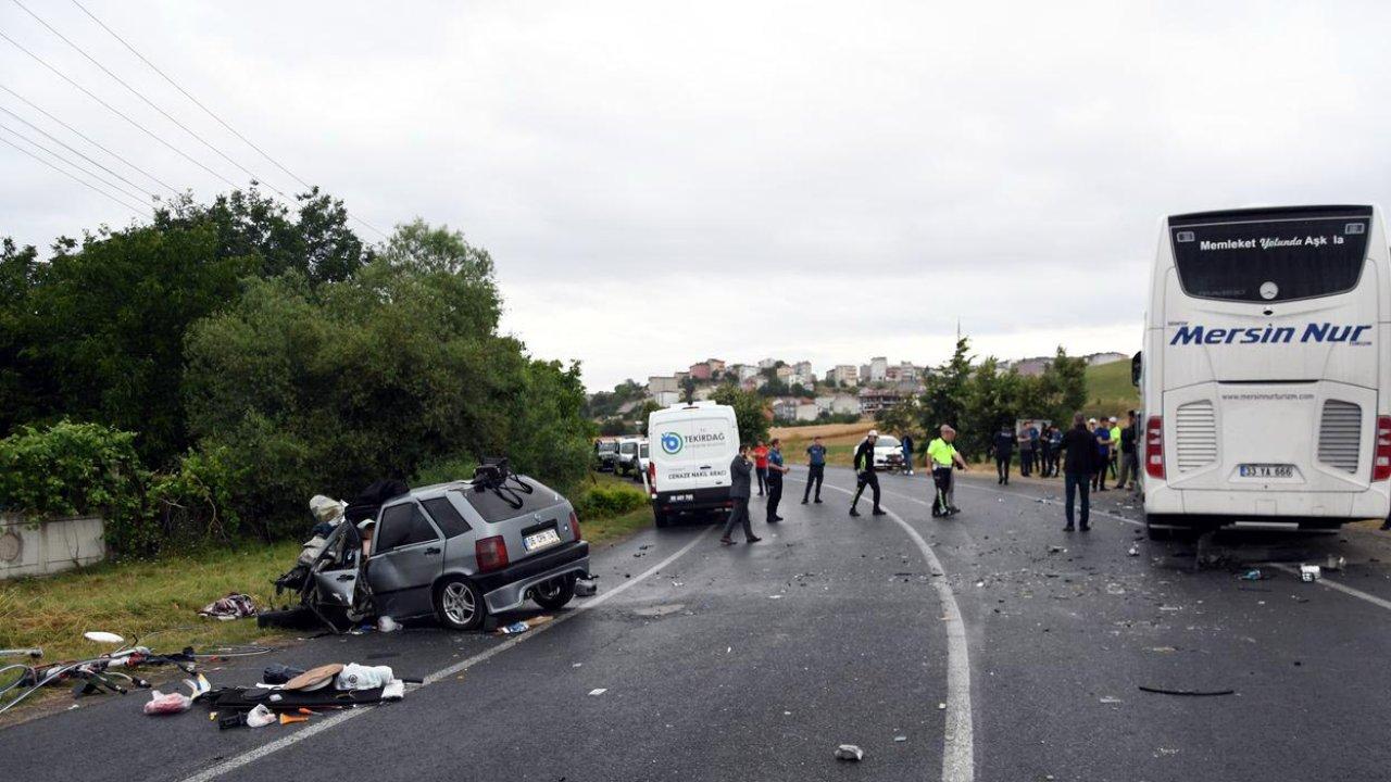 DHA- Tekirdağ'ın Çorlu ilçesinde, yolcu otobüsü ile çarpışan otomobilin sürücüsü İsmail Özer (51) öldü, eşi ve 2 çocuğu yaralandı.