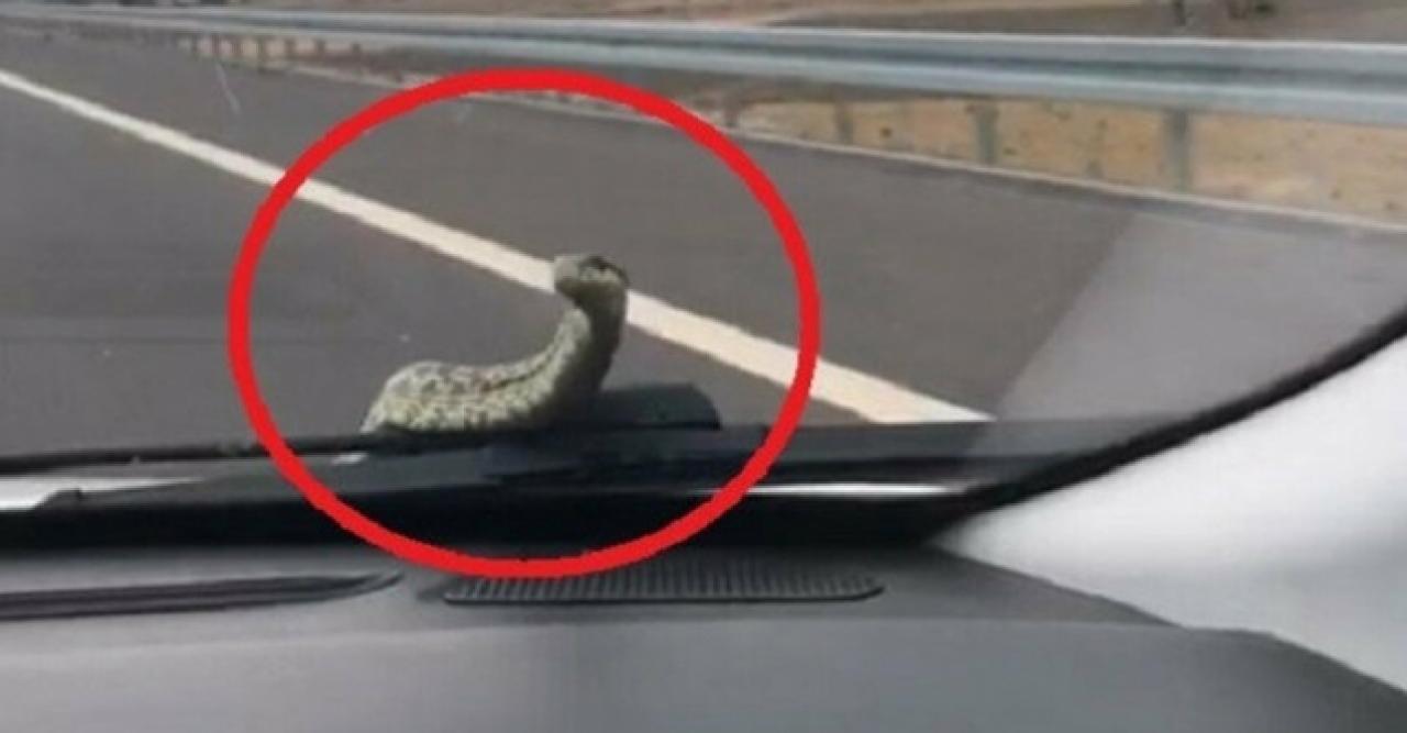Öte yandan Koray Fırıncıoğulları, seyir halindeyken otomobilin kaputundan çıkan yılanı cep telefonu kamerasıyla görüntüledi. Görüntülerde, kaputtan çıkan yılan bir süru bu şekilde yol aldığı görüldü.