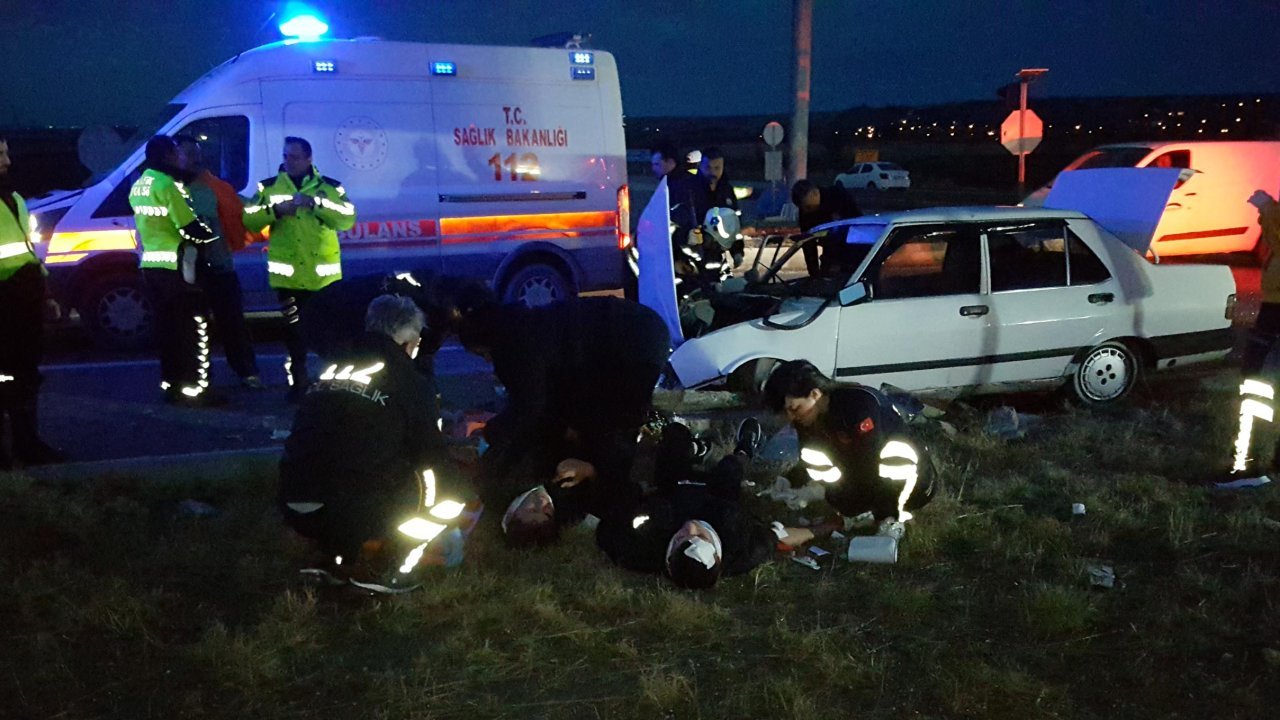 Kaza, saat 18.00 sıralarında Edirne- Kırklareli kavşağında meydana geldi. Kırklareli yönünden gelmekte olan A.C.'nin kullandığı 34 GAD 734 plakalı hafif ticari araç, kavşakta, Edirne'ye gitmekte olan F.V. yönetimindeki 39 ACA 218 plakalı otomobille çarpıştı. Çarpışmanın şiddetiyle savrulan otomobilde sürücü F.V. ile araçta bulunan 4 kişi ile hafif ticari aracın sürücüsü A.C., yaralandı. İhbar üzerine kaza yerine polis, sağlık ve itfaiye ekipleri sevk edildi. Yaralılar, kaza yerindeki ilk müdahalenin ardından Trakya Üniversitesi Tıp Fakültesi Hastanesi'ne kaldırılarak tedaviye alındı. Polisin kazayla ilgili incelemesi sürüyor.
